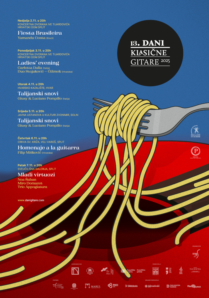 Partneri: Veleposlanstvo Kraljevine Španjolske u Republici Hrvatskoj, Talijanski institut za kulturu, Počasni konzulat Republike Italije, Hotel Marul, MID, D’Addario, Župa sv. Križ